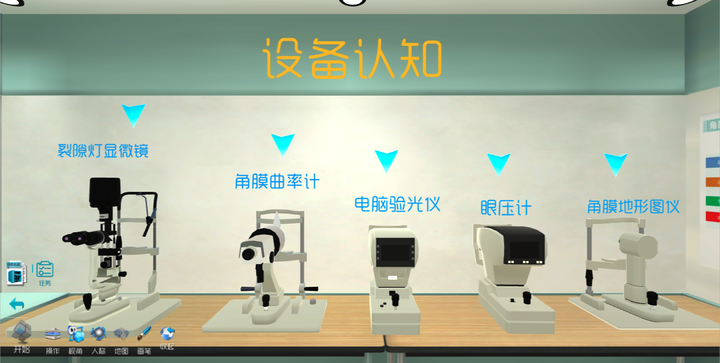 2.课中教学:课堂上,根据老师的教学安排,可通过如VR头盔等设备在虚拟环境中进行模拟“实操演练”,同时实操过程实时投射至教学屏幕,便于课堂互动。