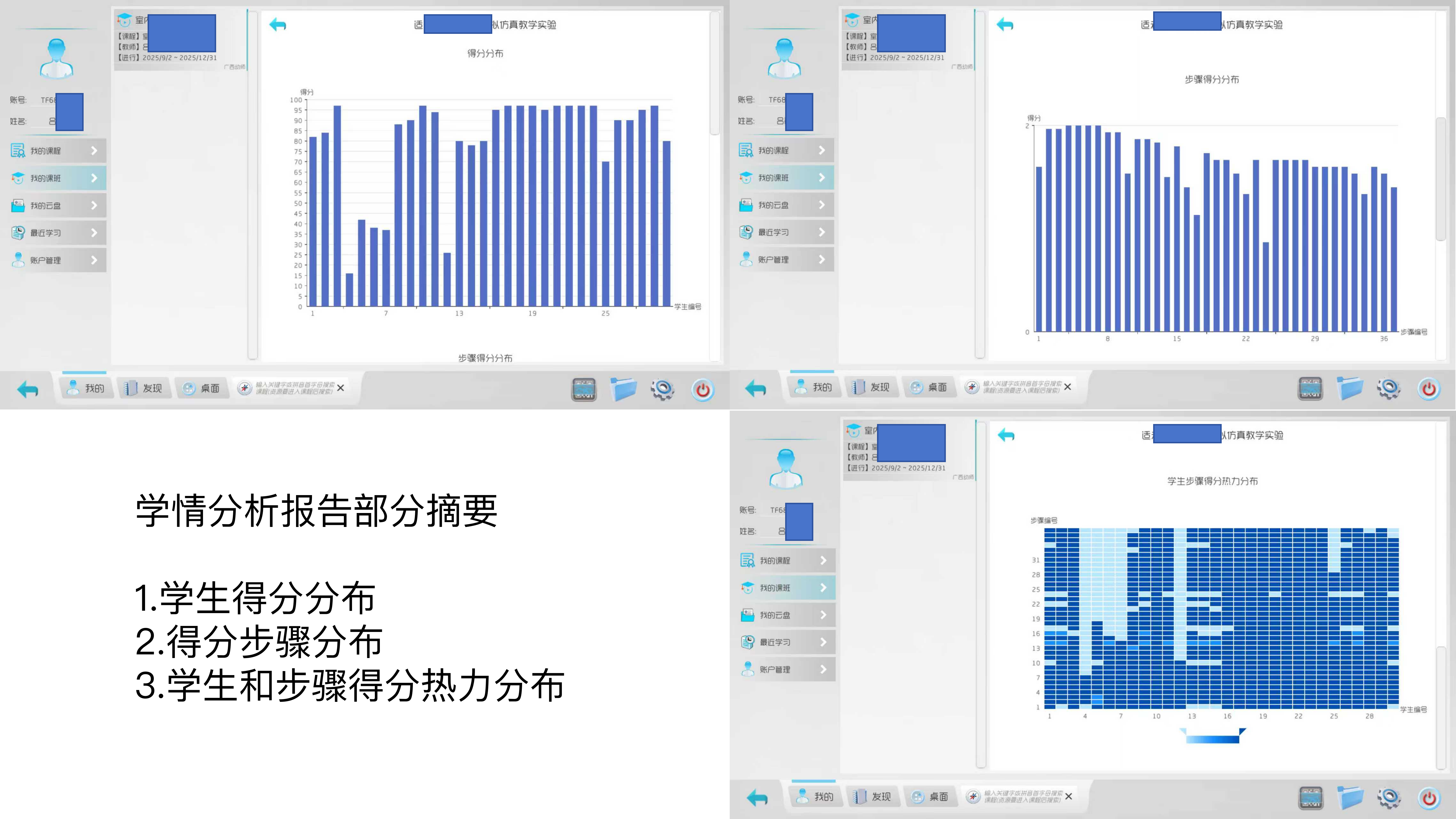 2.学情分析报告:系统自动生成智能学情分析报告,分析学生技能操作数据,输出可视化报告,帮助教师实时排查学习状态。
