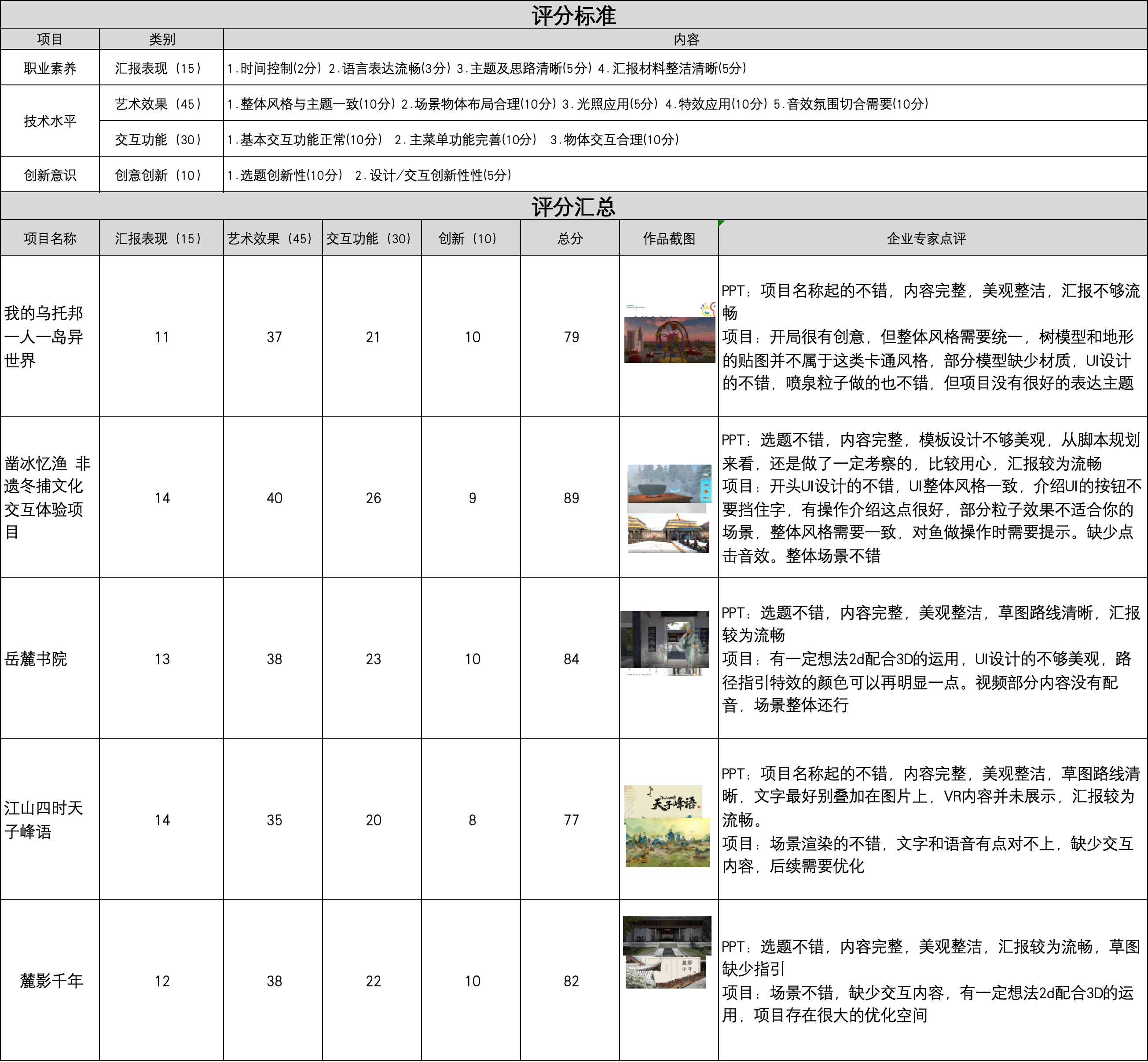 评审组依据艺术效果、交互功能等标准对作品进行打分,最终评选出优秀团队并颁发荣誉奖状,激励学生创新实践。