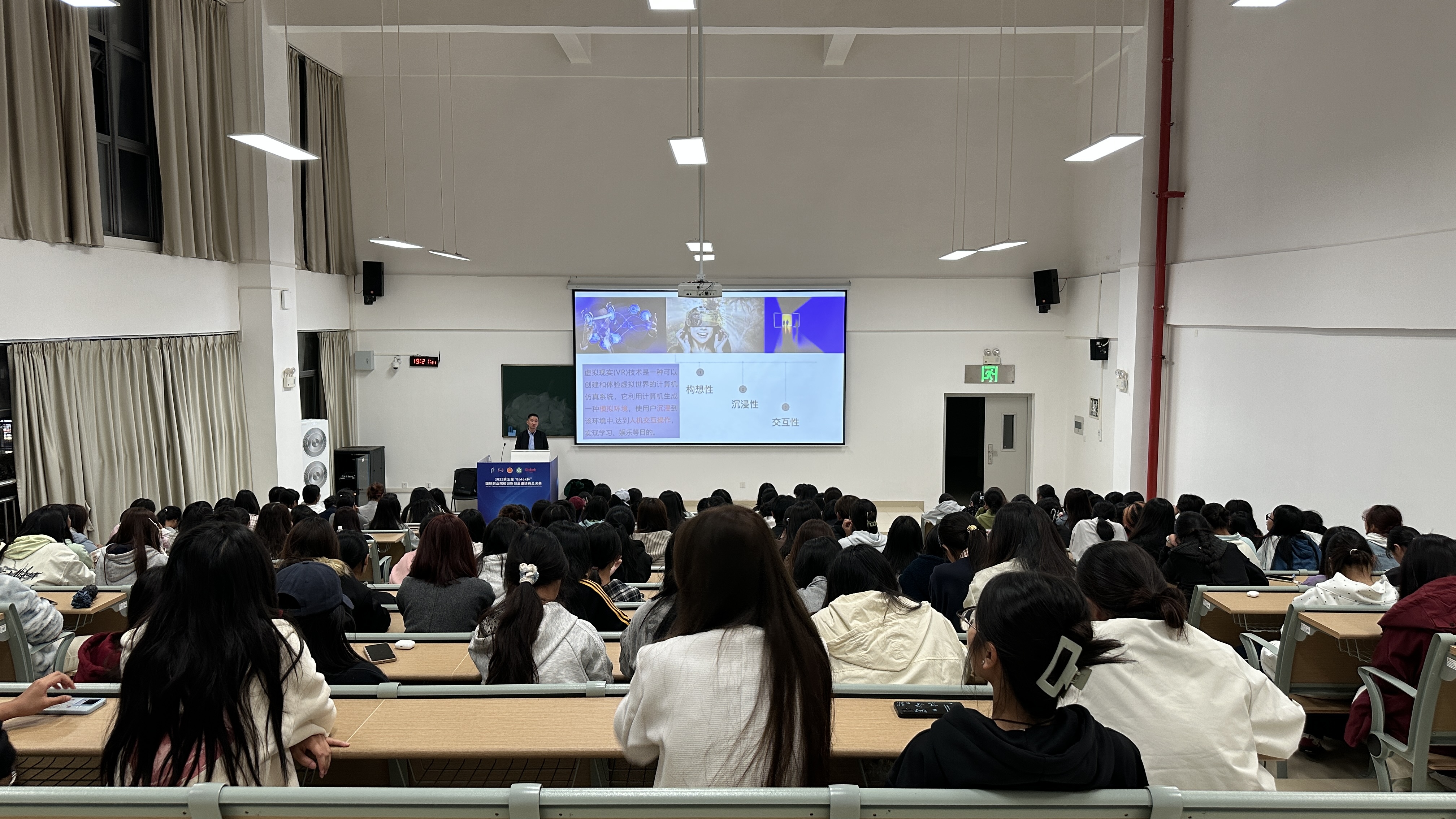 在开学第一课中,鄢总围绕国家数字经济战略、虚拟现实(VR)、人工智能交互等前沿技术展开讲解,结合实际案例深入剖析了这些技术对教育、产业及未来职业发展的深远影响。企业导师指出,数字经济时代对数字媒体技术人才提出了更高的要求,学生需具备跨学科能力,将技术与艺术、创新与实践相结合,才能在未来的职业生涯中脱颖而出。