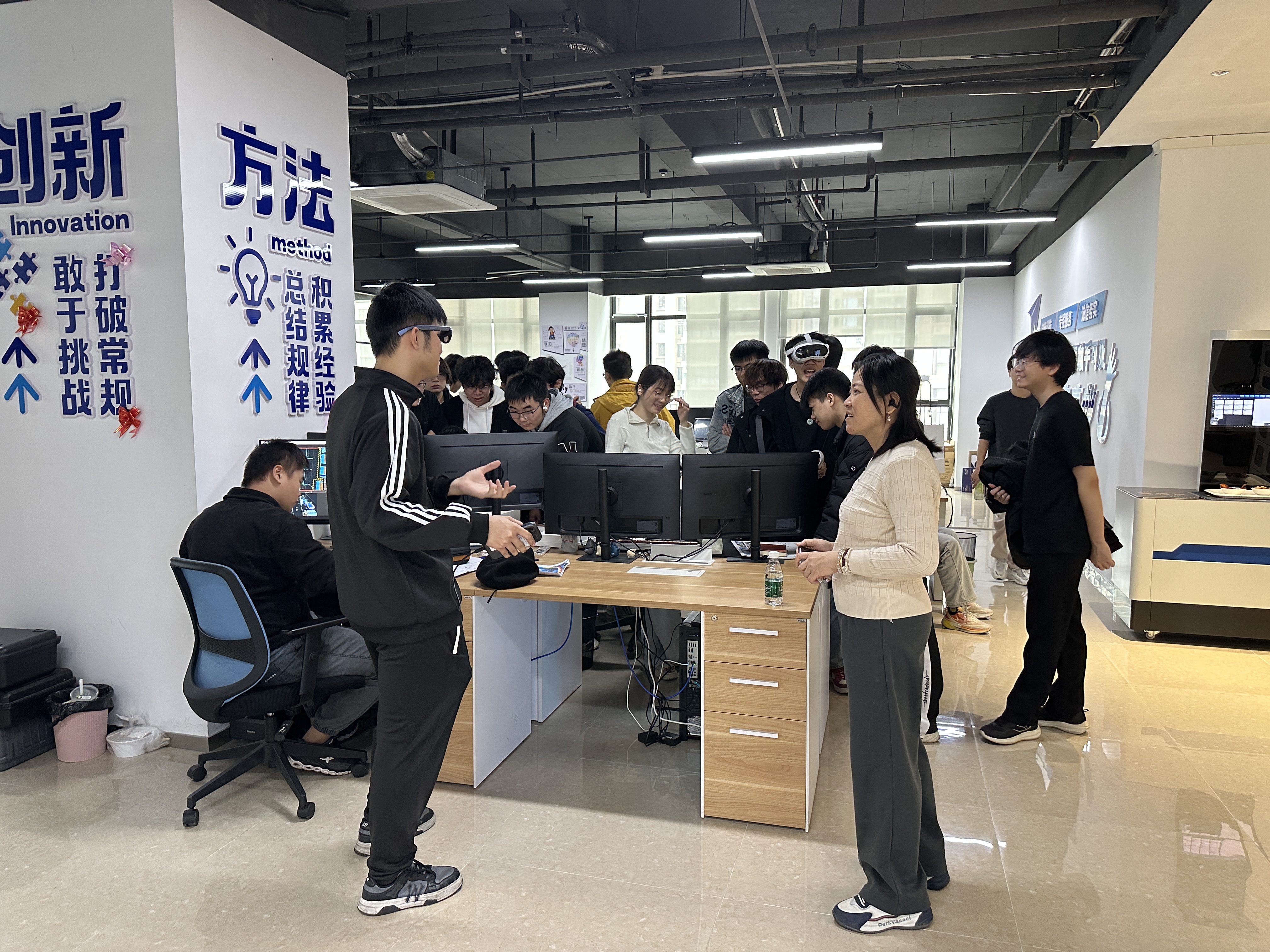 为深化实践环节,遥知组织学生进入企业学习基地,开展实地考察。企业工程师指导学生体验相关虚拟现实设备和行业案例,并对企业就业、工作内容进行相应的介绍,树立同学们的就业观念。