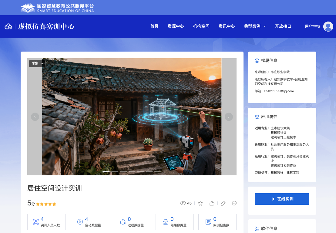 枣庄职业学院&山东遥知联合开发的《居住空间设计实训》虚拟仿真课程,近期正式上线国家智慧教育公共服务平台