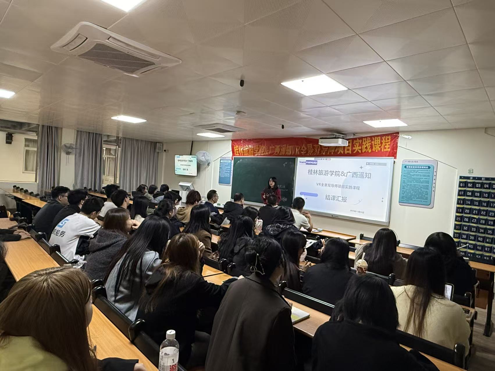 本次“VR全景双导师项目实践课程”是桂林旅游学院艺术设计学院与广西遥知校企合作的重点项目之一。课程采用创新的“双导师”教学模式,由学校专业教师与企业资深技术专家共同指导。课程聚焦VR全景漫游技术的开发与应用,旨在帮助学生掌握虚拟现实领域的核心技能,并通过真实项目实践提升综合能力。