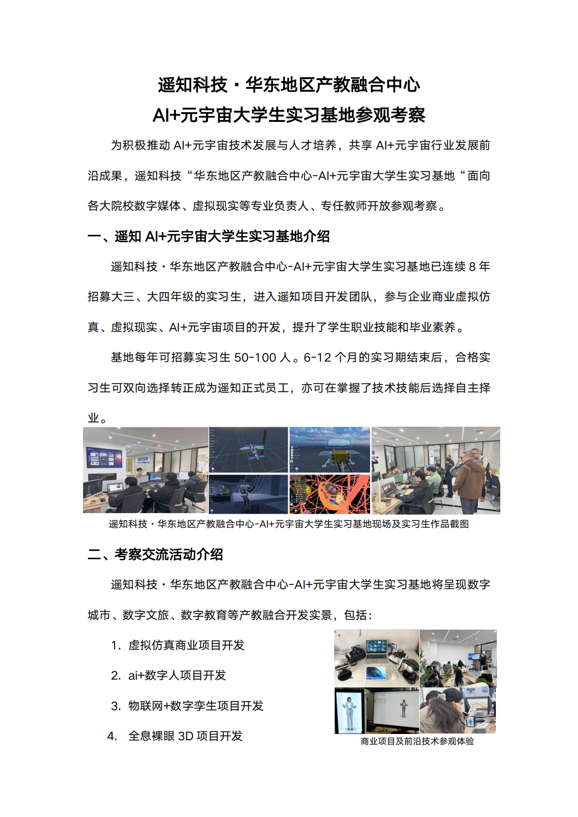 【考察邀请】遥知科技 AI+元宇宙大学生实习基地参观考察