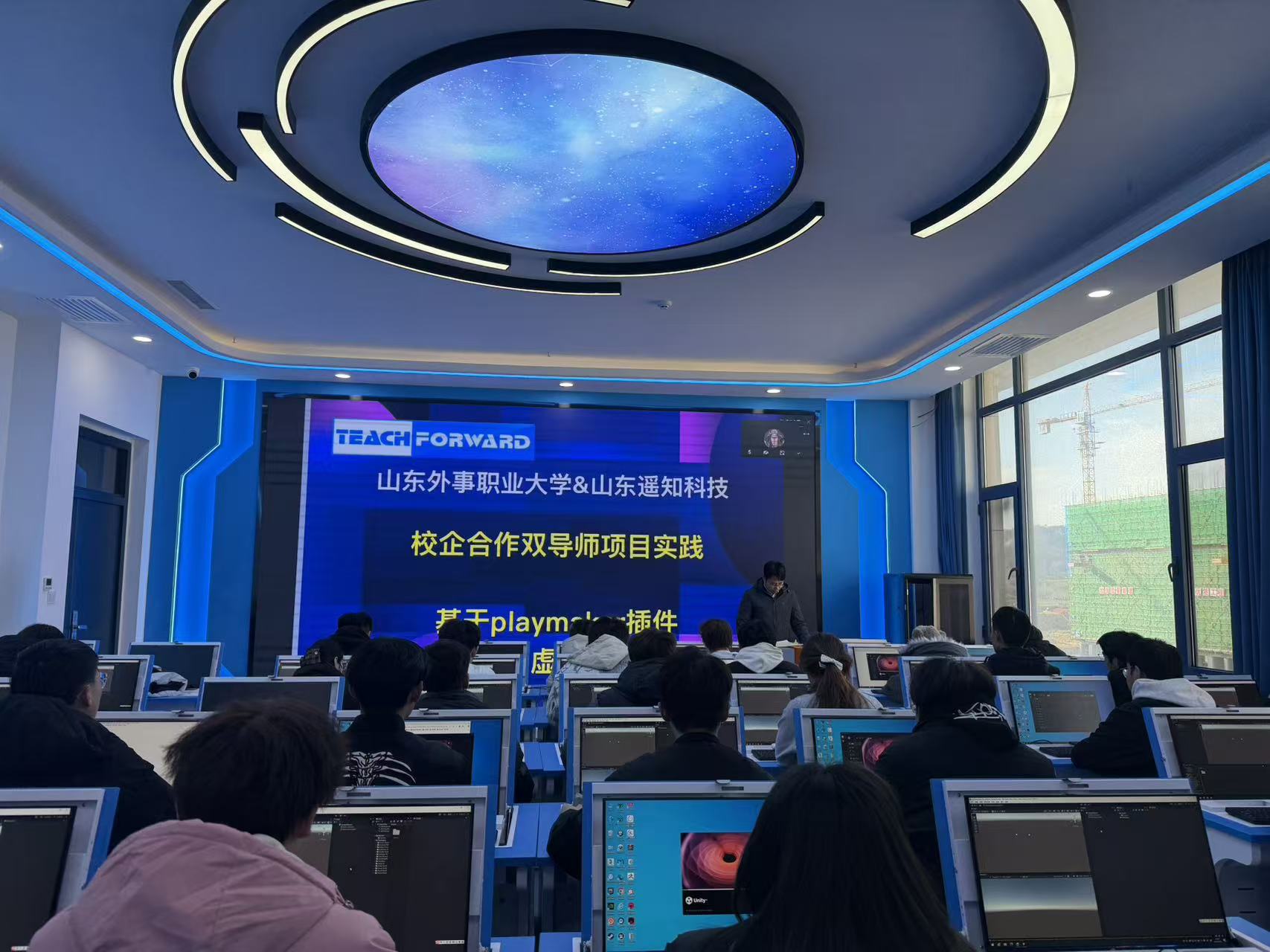 近日,山东外事职业大学与山东遥知联合开展的“基于Playmaker插件的室外虚拟交互”双导师项目实践正式开课,标志着双方在产教融合领域迈出实质性步伐。