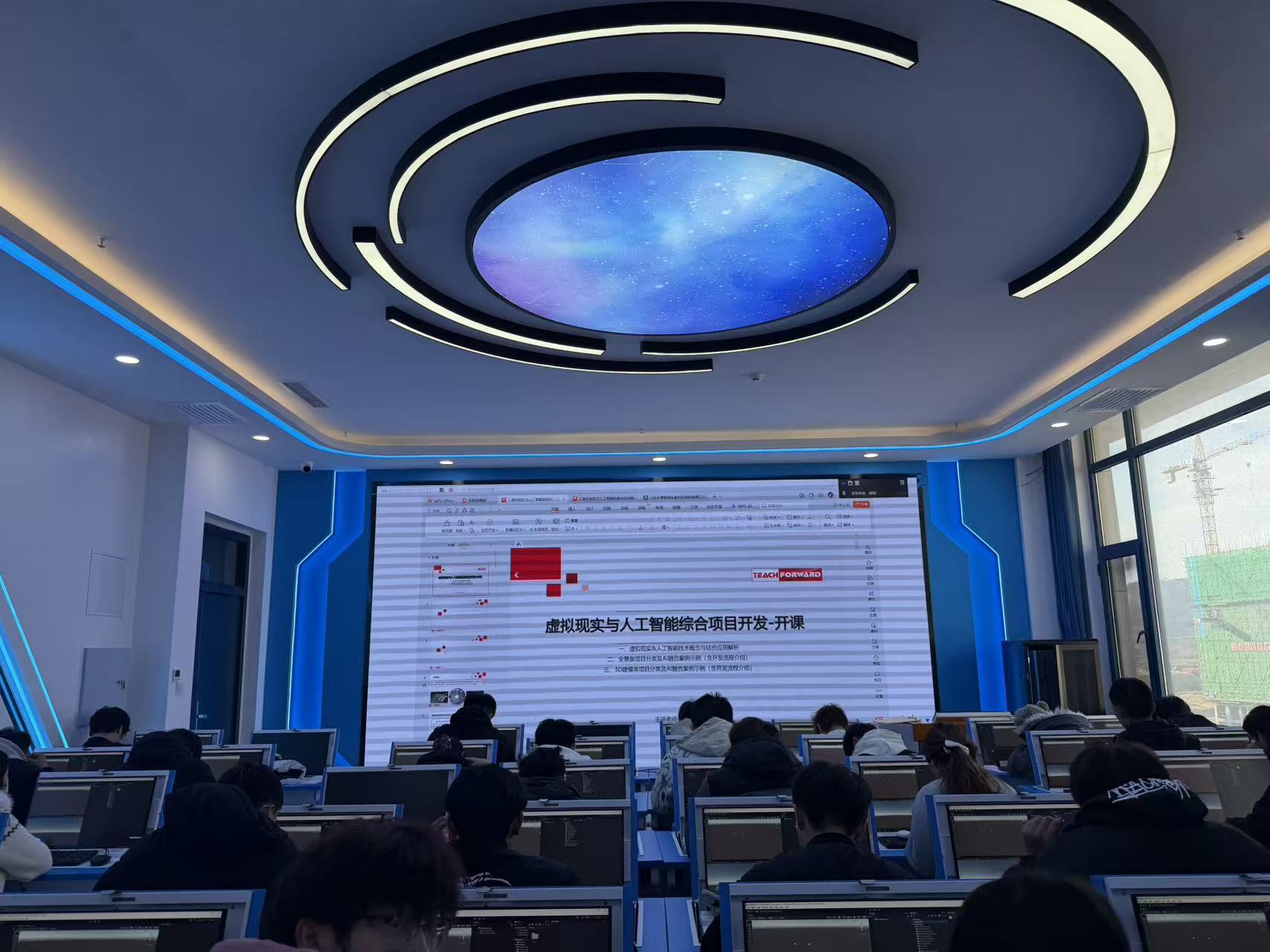 本学期项目聚焦VR室外交互漫游开发,采用“企业工程师+校内专业教师”双导师制。企业导师带来一线实战经验,指导学生掌握虚拟场景构建、交互功能开发等核心技能;校内教师则强化理论衔接,确保学生知识体系完整。双轨并行培养模式,有效破解传统教学中实践与产业脱节的难题。