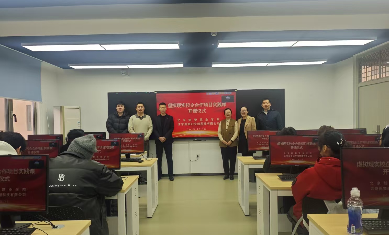 北京遥知与北京培黎职业学院联合举办的虚拟现实双导师项目实践课正式开班。学院教务处处长、计算机系主任、科协副秘书长、专任教师以及合作北京遥知数字教育专家同出席仪式。此次合作标志着遥知通过创新教育模式为虚拟现实产业输送实战型人才。