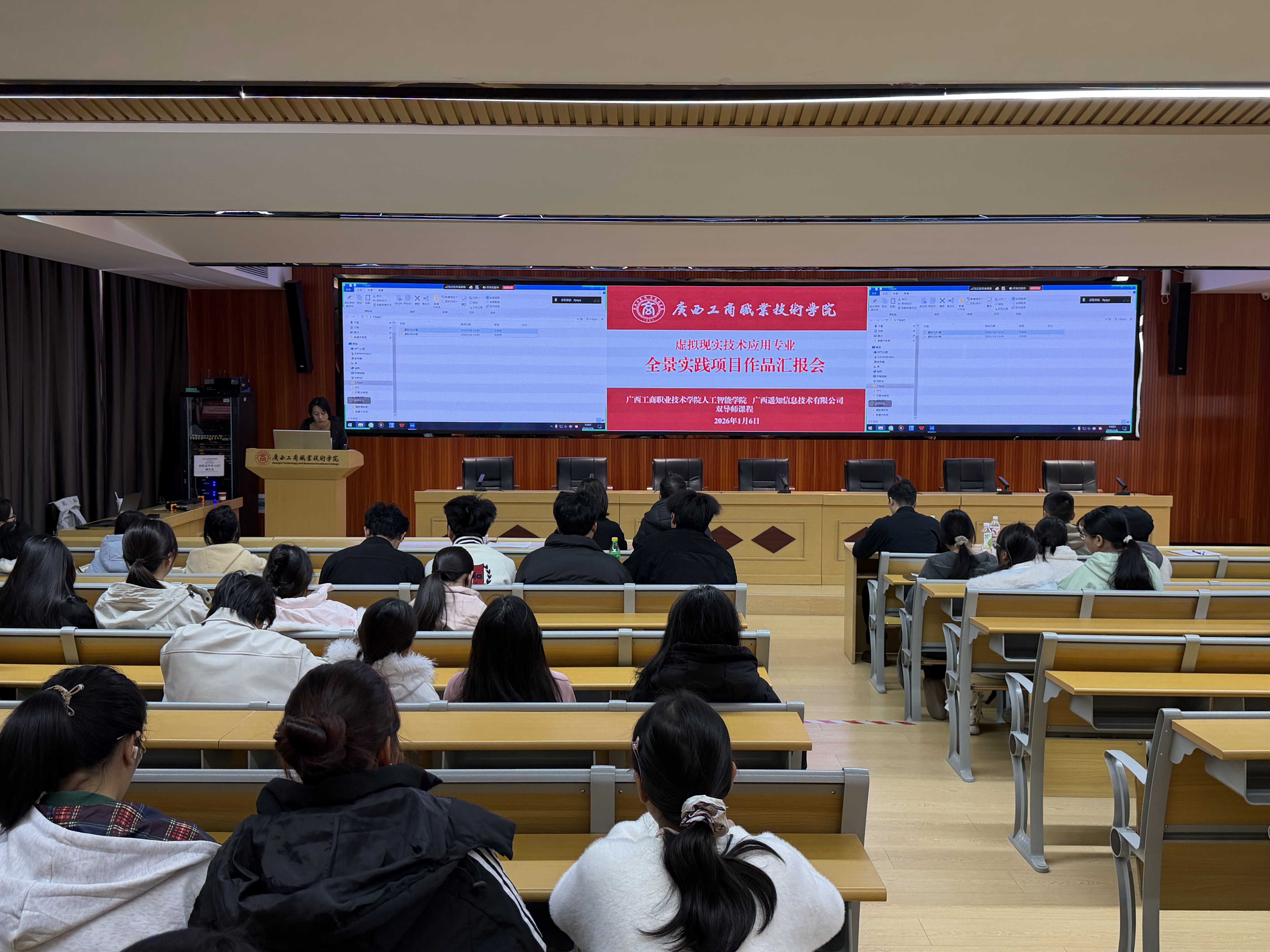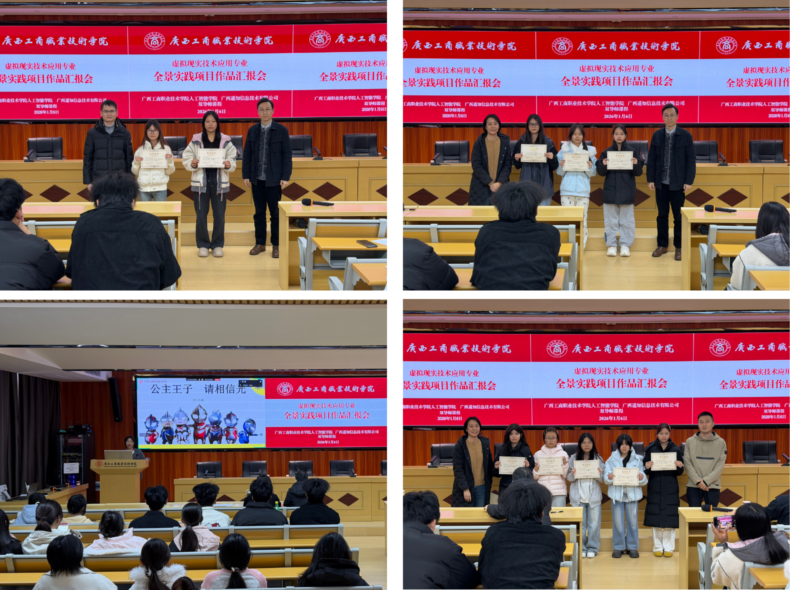 近日,由广西遥知与广西工商职业技术学院人工智能学院联合举办的《720云全景VR项目实践开发》双导师课程结业汇报暨项目闭幕仪式在学院隆重举行。经过20余天的时间,18个学生小组顺利完成VR全景技术开发实践,标志着产教融合模式取得新突破。