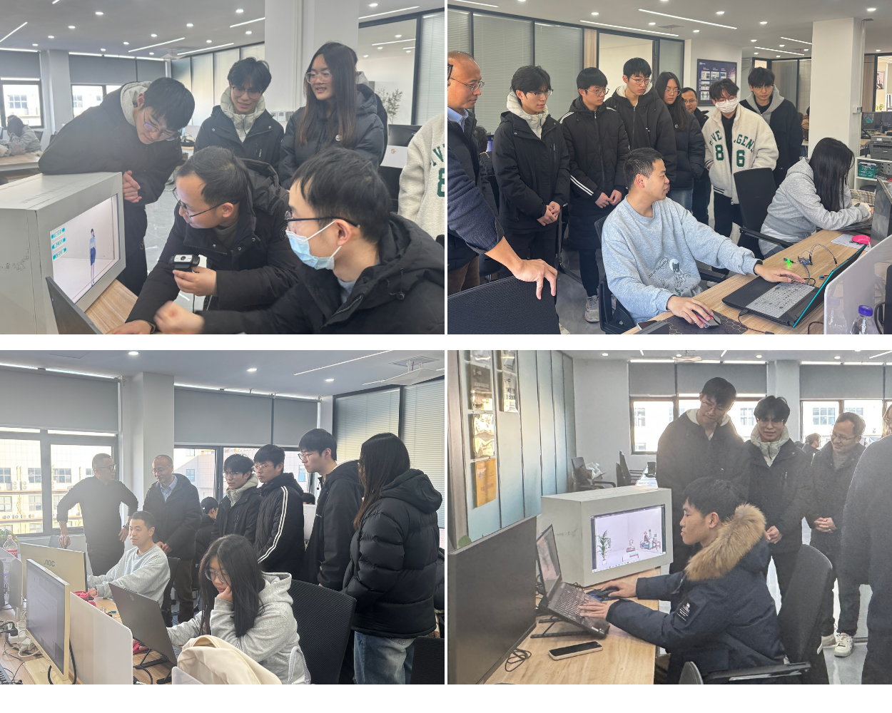 在遥知技术人员的陪同下,学院师生参观了遥知开发实训生产线,体现了AI+物联网、AI+数字人、裸眼3D、虚拟仿真开发平台等技术,实地了解了行业前沿技术的应用场景。双方就智能制造、信息技术等领域的核心技术发展趋势进行了专题研讨。
