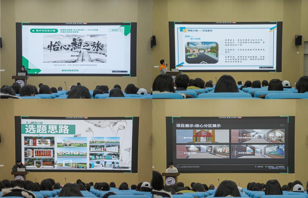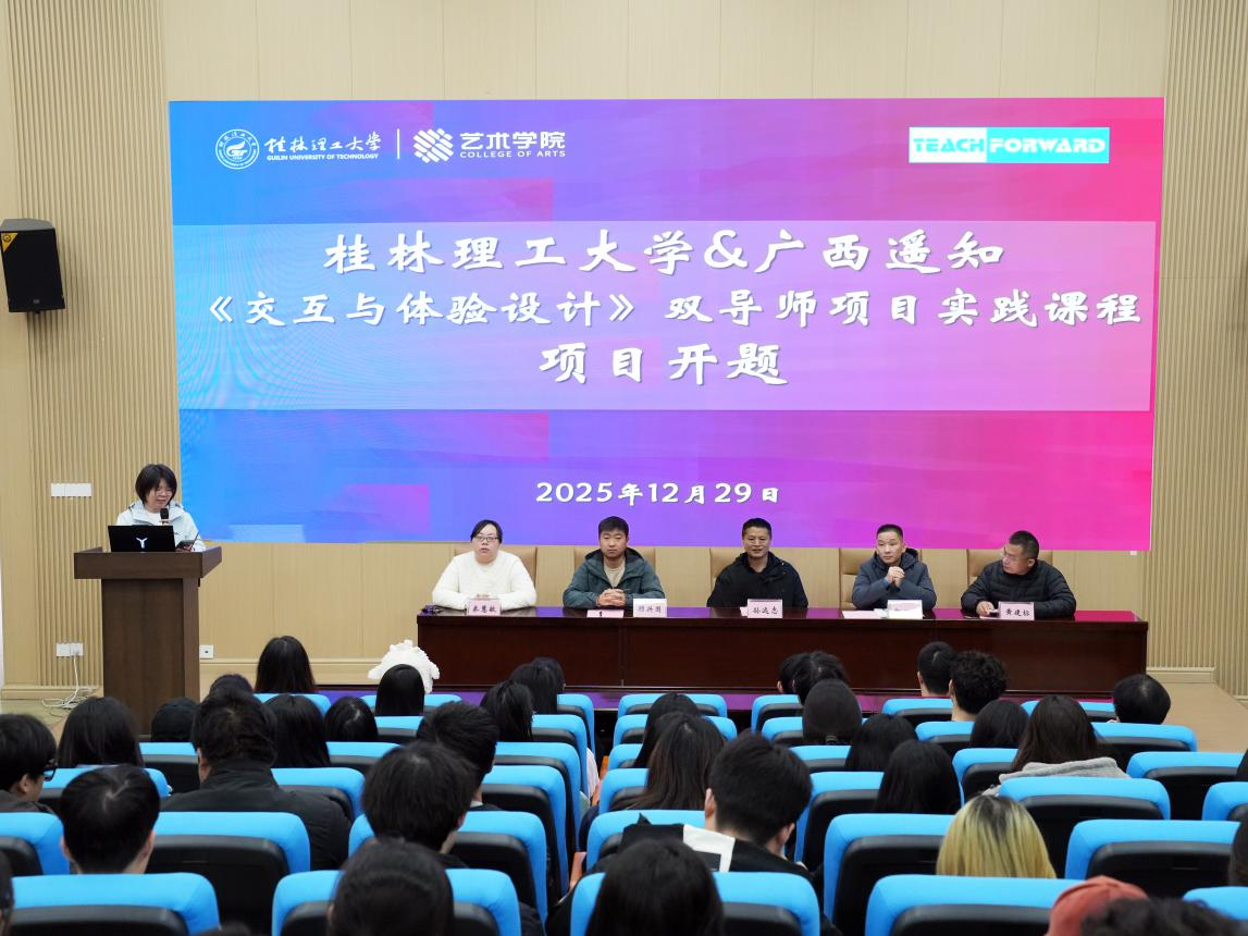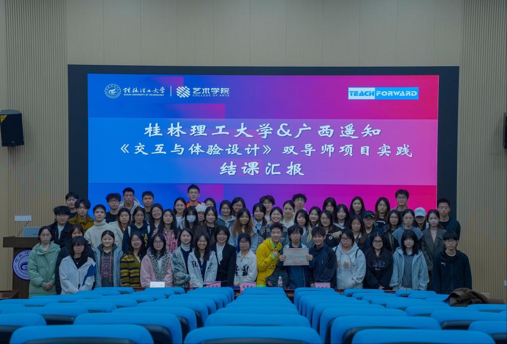 2026年1月15日下午,桂林理工大学博雅讲堂内气氛热烈,数字媒体艺术专业《交互与体验设计》课程结课汇报与双导师实践项目成果展圆满举行。本次活动集中展示了14个学生小组在“校内导师+企业导师”双轨指导下的完整实践成果,标志着广西遥知与桂林理工大学深化产教融合的又一阶段性成就。
