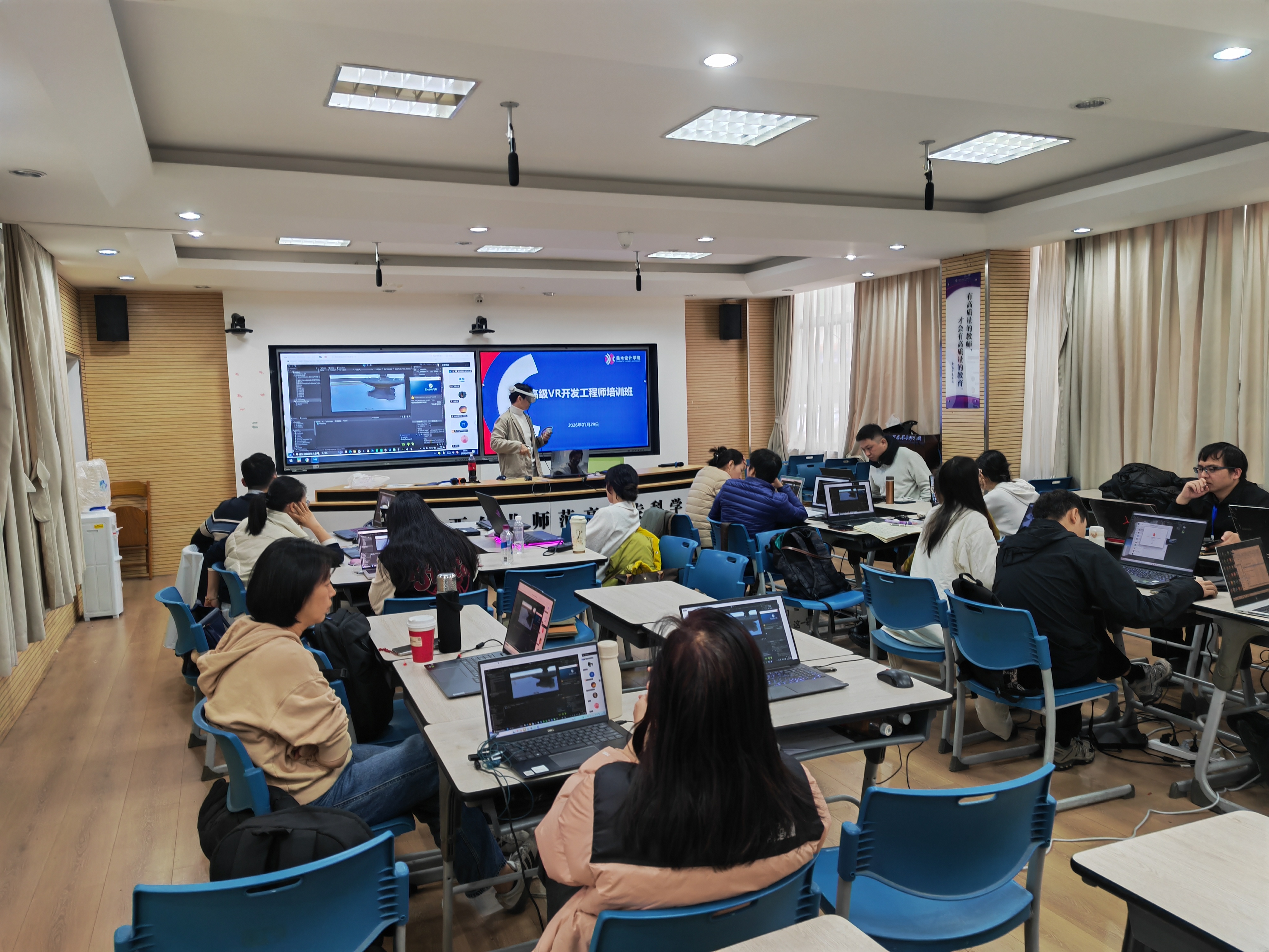 本次培训聚焦虚拟现实技术在教育领域的深度应用,涵盖VR全景、VR开发核心技术、教学场景设计、课程体系建设等内容,旨在提升高校教师的技术实践能力与教学创新能力。