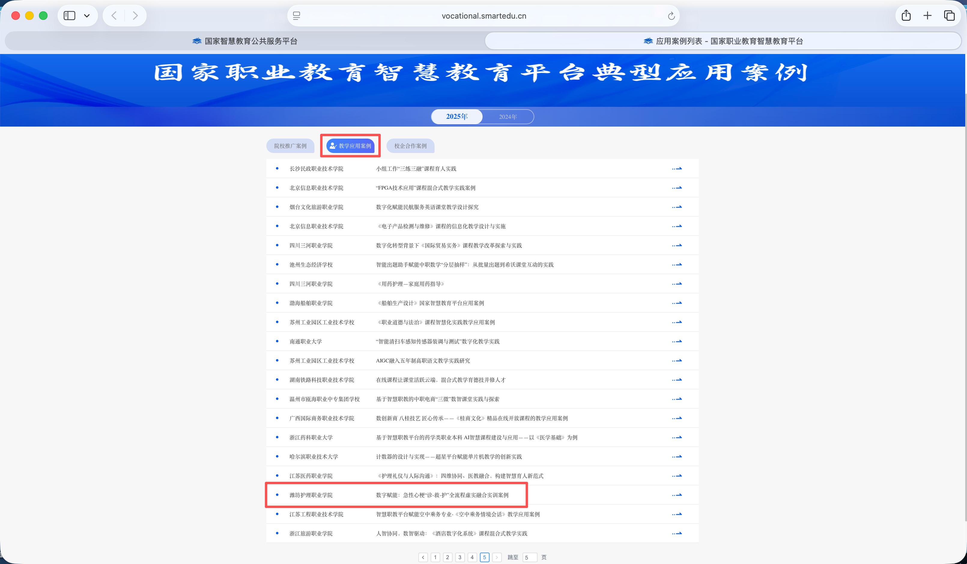 此次入选的课程包括校企合作案例《“一校二企”三元协同:PICC虚拟仿真教学资源的共建与实践》和教学应用案例《数字赋能:急性心梗“诊-救-护”全流程虚实融合实训案例》。
