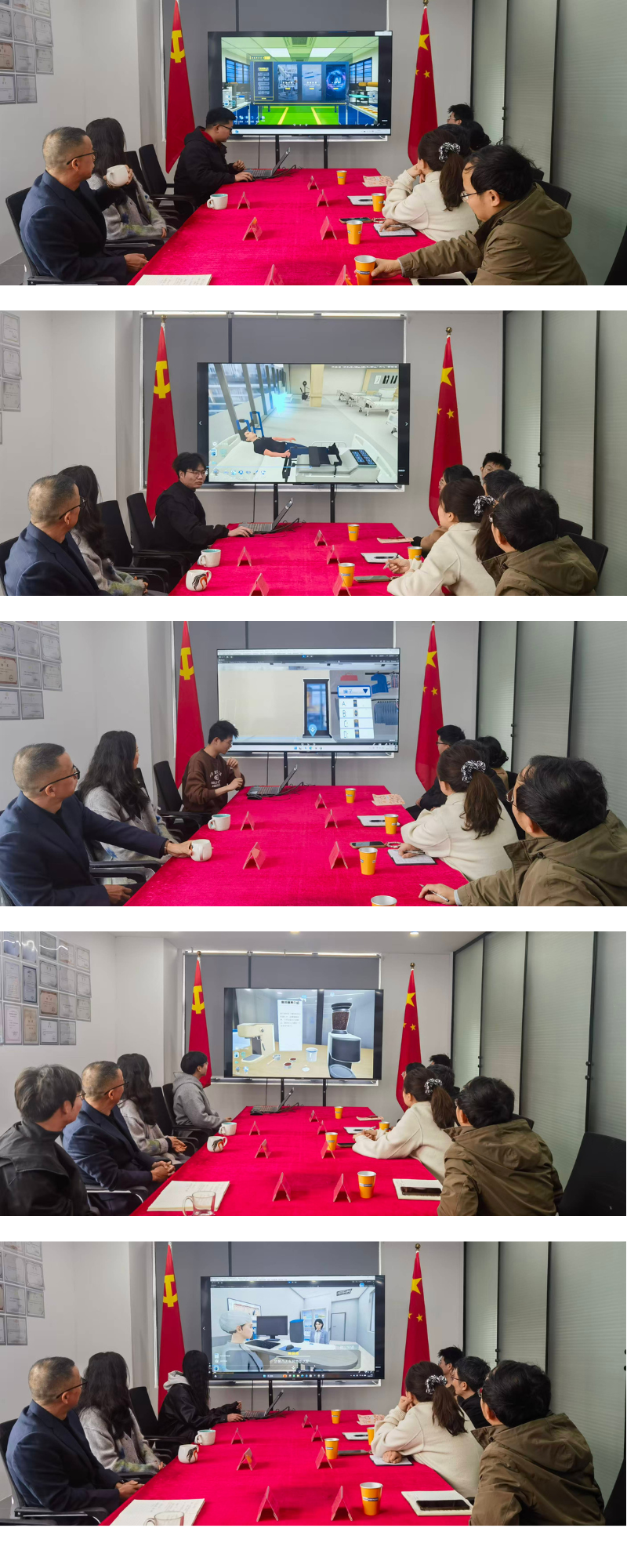 活动中,校方代表实地参观了产教融合中心,并亲切看望正在遥知实习的在校学生。实习生们现场汇报了项目开发进展,展示了在人工智能、虚拟仿真等领域的实战成果。校方详细询问了同学们的实习内容、技能提升情况及职业发展规划,对遥知"项目驱动、真题真做"的培养模式给予高度评价。